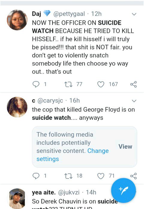 A twitter user made a tweet on twitter saying “George Floyd’s killer is trying to commit Suicide so he has been placed on suicide watch”